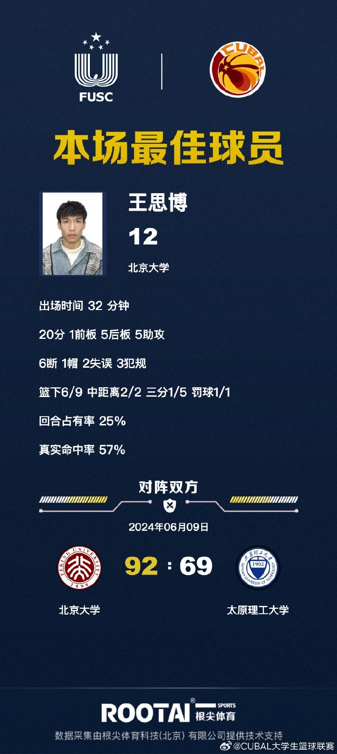 🏀CUBAL八强-王思博20+6+5+6断 北大轻取太原理工