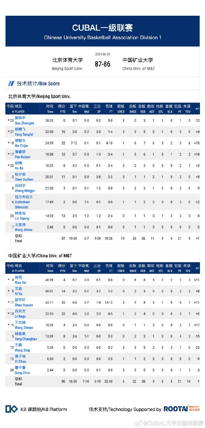 🏀CUBAL-矿大下半场崩盘!谢智杰22分 北体大20分大逆转夺季军