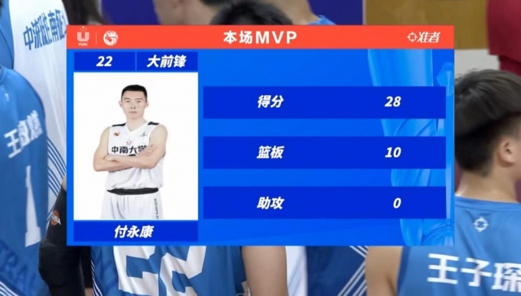 中南大学(2-0):付永康28分10篮板、郭奇芳25分12篮板5助攻、王傲然2分5助攻、赵中兴5分10篮板、张东旭9分5篮板、龚思成15分