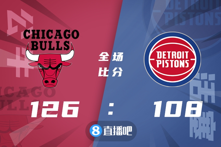 上半场,公牛率先发力取得9-2的开局,活塞很快进入状态内外开花迫近比分,公牛持续发力,轮番冲击篮筐频频得手将分差拉开到两位数,此后双方展开拉锯战,半场战罢公牛65-56领先。下半场,双方围绕10分左右的分差展开激烈争夺,活塞命中率下降,公牛一度将优势扩大到18分,活塞奋力反击将分差缩小到个位数,但公牛多点开花将分差拉开到20分杀死比赛。最终,公牛126-108击败活塞,客场过关。