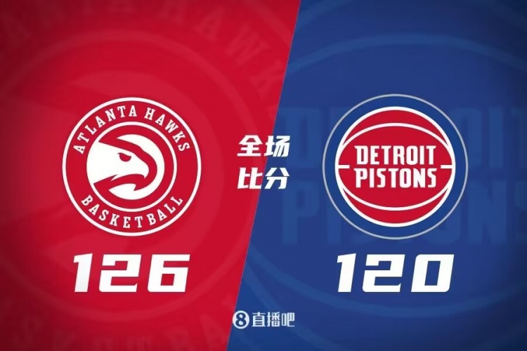 德章泰-穆雷上来就有攻有传帮助老鹰打出14-6开局,巴格利和斯图尔特接连内线取分止血,但老鹰众将手感火热,接连外线发炮单节轰出38分建立9分领先,次节康宁汉姆接连送出助攻帮助活塞追分,随后活塞众将接连冲击内线打出15-3攻击波一度反超比分,好在博格丹接连外线发炮止血助队守住4分领先。下半场,双方继续对攻,亨特接连取分,穆雷也是冲击内线连续得手,但奥萨尔-汤普森单节5中5轰下10分帮助活塞顶住压力,三节结束活塞落后6分,末节康宁汉姆联手汤普森继续追分,但穆雷又送助攻又抢断反击还能回应,活塞依靠替补三分继续咬住比分,但诺克斯三分不中后伯克斯犯规让老鹰领先到5分,最终老鹰126-120险胜活塞,送对手9连败。