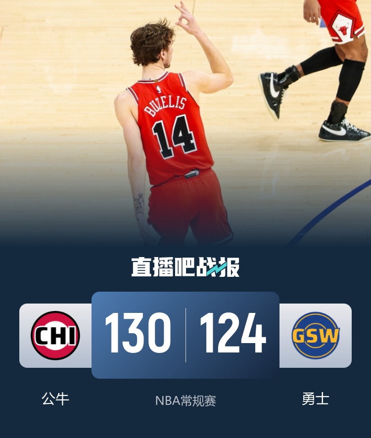 🏀勇士加时惜败公牛 布泽利斯41+6 吉迪21+13+17 铂金17分
