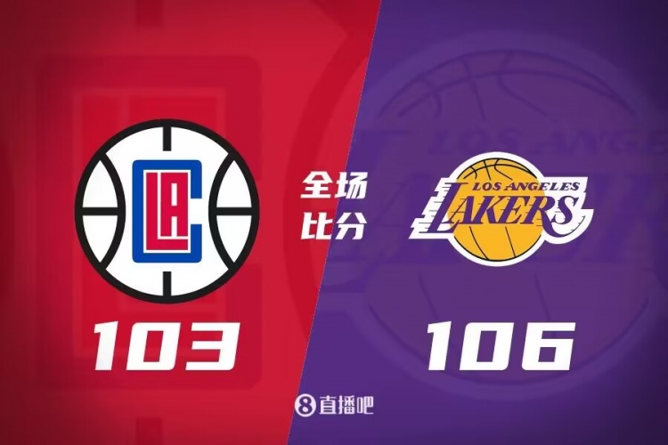 开场两队经过短暂的僵持后快船逐渐占据上风,祖巴茨内线表现活跃连连拿分,湖人进攻端手感并不理想。但第二节湖人外线找到手感在詹姆斯的带领下连连追分,快船毫不示弱都能够及时回应,上半场打完快船领先湖人4分。下半场詹姆斯隔扣乔治为湖人吹响反击号角,两队轮番在外线发炮,湖人在三节结束时反超4分,末节湖人一度将分差拉大到10分,但快船迅速又将比分追上,詹姆斯打进关键上篮,快船使用犯规战术但也未能回天,最终湖人106-103力克快船结束4连败,快船5连胜被终结。