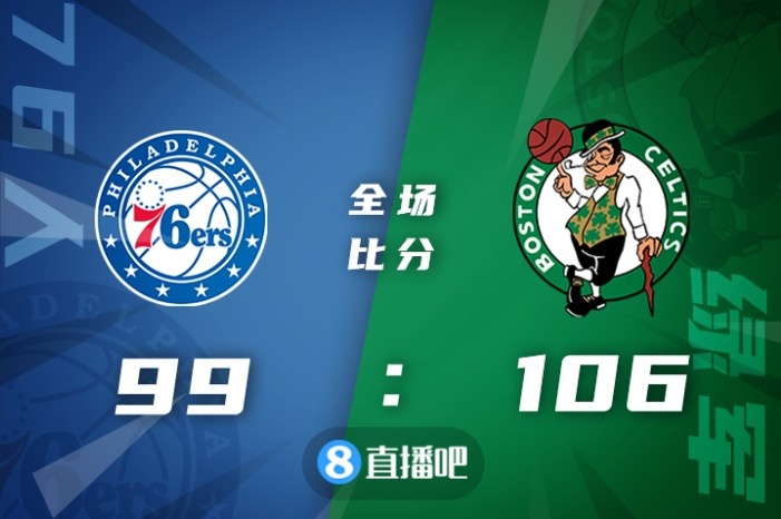 比赛开始,双方开场阶段势均力敌,比分交替领先,凯尔特人多点开花取得两位数优势,76人轮番冲击内线拿分顽强追赶,半场战罢凯尔特人59-55领先4分,杰伦-布朗因伤退出比赛。易边再战,76人内外开花扳平比分,凯尔特人三分4连击重新占据主动,哈登恩比德联手带队追赶,末节凯尔特人利用防守反击重获10分领先,76人奋起直追迫近比分,关键时刻怀特命中三分,76人连续进攻无果。最终,凯尔特人106-99力克76人,主场过关。