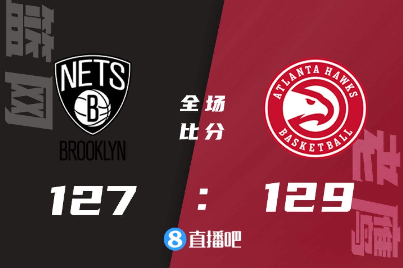 上半场,双方开场阶段势均力敌,比分咬得很紧,老鹰持续发力内外开花将分差拉开到两位数,篮网苦苦追赶,老鹰一度取得18分优势,篮网奋力反击打出18-7的攻击波,半场战罢篮网57-64落后。易边再战,两队大打对攻,篮网多点开花反超比分,特雷-杨得分助攻一肩挑带队夺回优势,末节双方争夺陷入白热化,关键时刻篮网一波8-0扳平比分,特雷-杨中投完成绝杀。最终,老鹰129-127险胜篮网,主场过关。