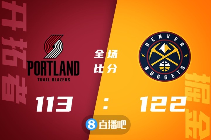 比赛上来,双方就迅速进入到对攻战,场上比分交替领先,次节双方依旧攻势不减,约基奇半场8中8拿到21分,而利拉德同样是状态火热爆砍30分,在两人的带领下分差始终没能拉开,半场结束时掘金领先6分;下半场开拓者的命中率开始下降,掘金把握住机会成功将分差拉开到了两位数,末节开拓者也没有获得迫近比分的机会,分差反而越拉越大,最终掘金122-113轻取开拓者迎来七连胜。