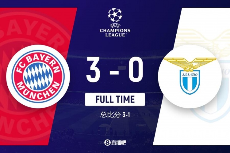3月6日讯 欧冠1/8决赛次回合,拜仁主场迎战拉齐奥,双方首回合拜仁0-1落败。上半场,凯恩、穆勒破门!拜仁2-0领先拉齐奥,总比分2-1反超;下半场,凯恩补射完成双响,赛季33场打进33球!最终,拜仁主场3-0完胜拉齐奥,两回合总比分3-1翻盘成功!晋级欧冠8强!