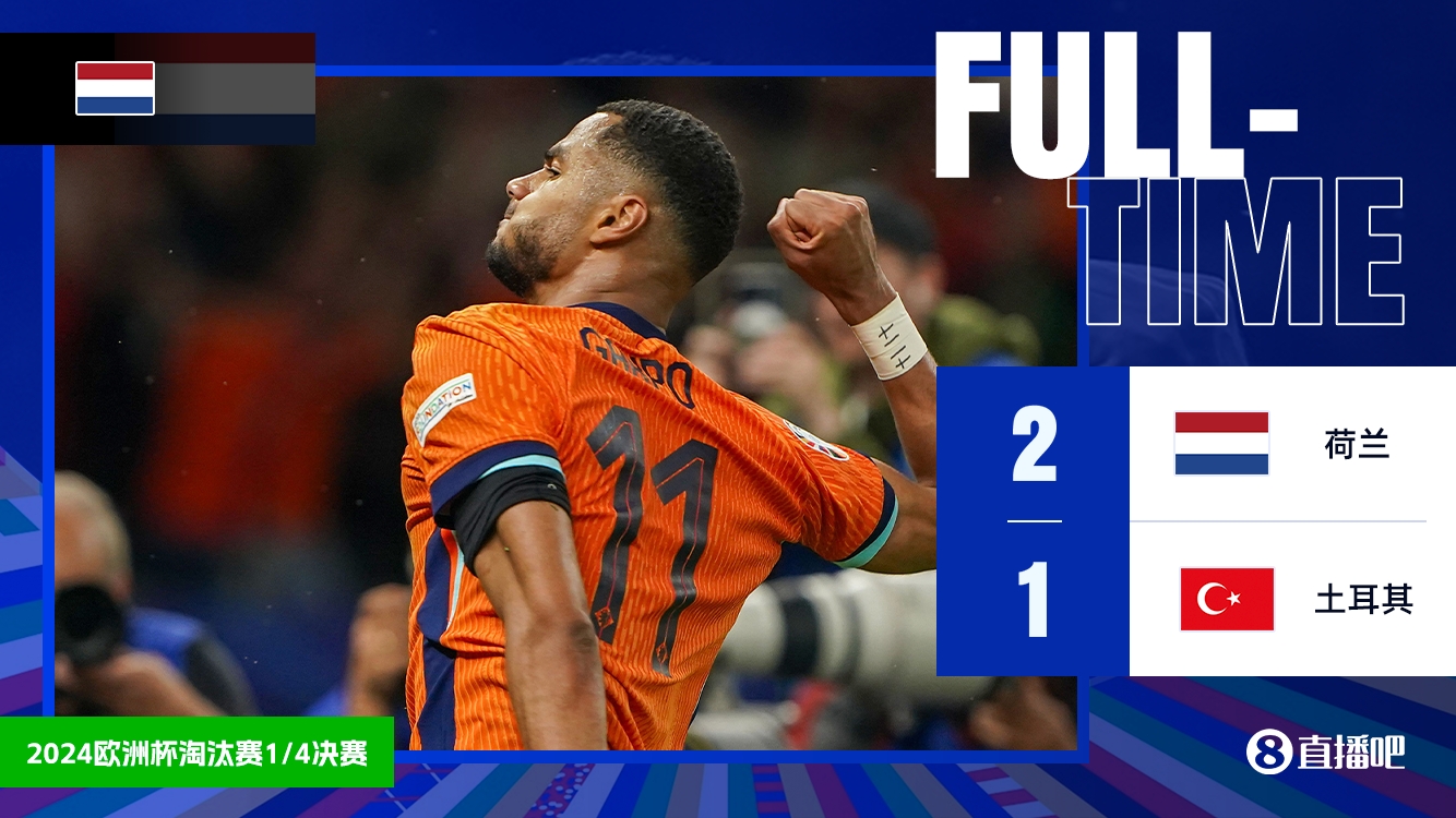 7月7日讯 欧洲杯1/4决赛,荷兰对阵土耳其。上半场,居勒尔助攻阿卡丁头槌破门。易边再战,德佩失空门良机,居勒尔任意球中柱,德弗里头槌扳平,加克波造乌龙制胜。最终荷兰2-1土耳其晋级四强将战英格兰。
