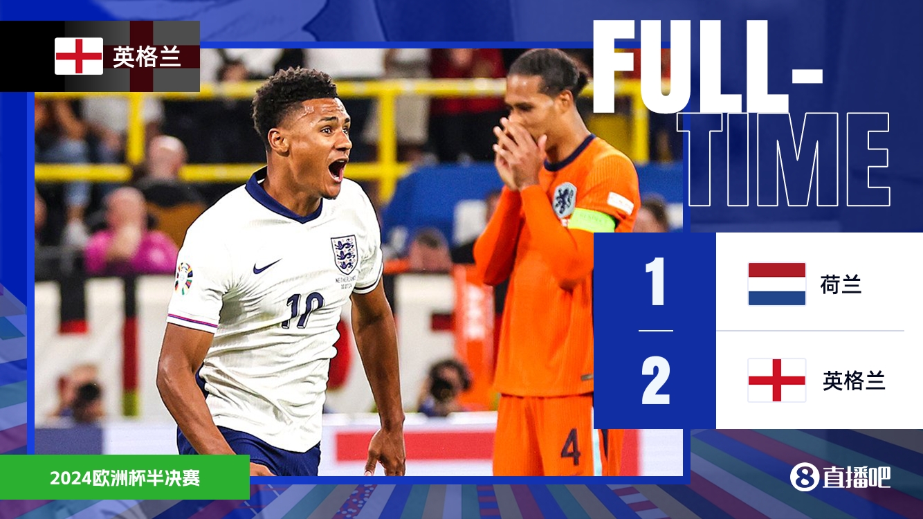 7月11日讯 北京时间3:00,欧洲杯半决赛荷兰vs英格兰。上半场,哈维-西蒙斯世界波破门!邓弗里斯送点,凯恩点射扳平;邓弗里斯门线解围,随后又头球击中横梁!福登远射击中立柱!德佩35分钟伤退。下半场,萨卡破门被吹;沃特金斯替补登场,90分钟绝杀!