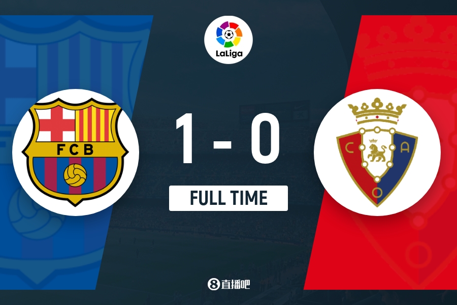 全场比赛结束,巴萨1-0击败奥萨苏纳。