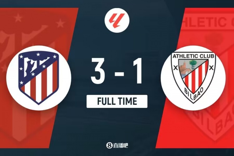 4月28日讯 北京时间4月28日03:00,西甲第33轮马竞迎战毕尔巴鄂的比赛,上半场德保罗凌空抽射破门,格列兹曼回传失误,尼科威廉姆斯推射扳平比分,下半场科克助攻科雷亚单刀反超比分,利诺爆射扩大比分,最终马竞3-1毕尔巴鄂领先第五名6分。