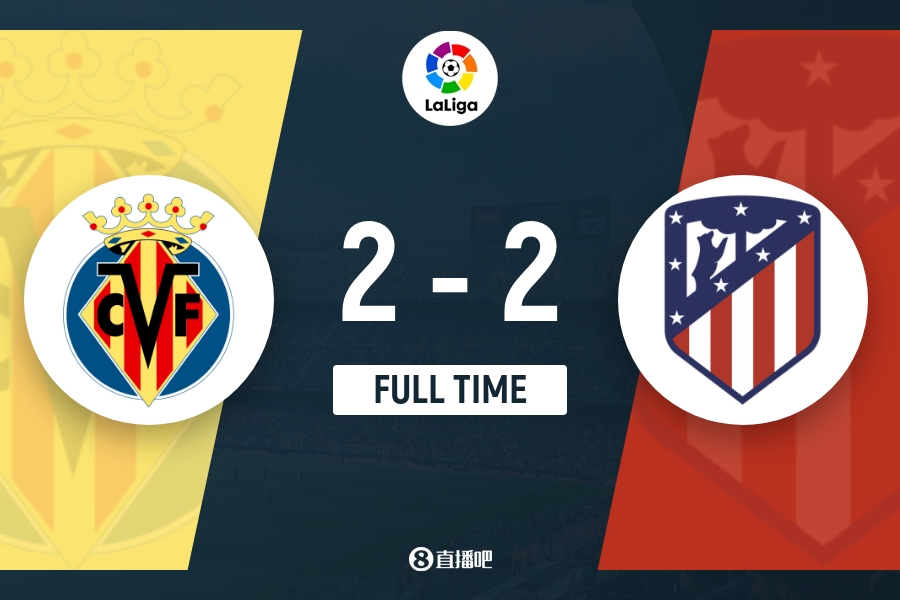 全场比赛结束,马德里竞技2-2比利亚雷亚尔。