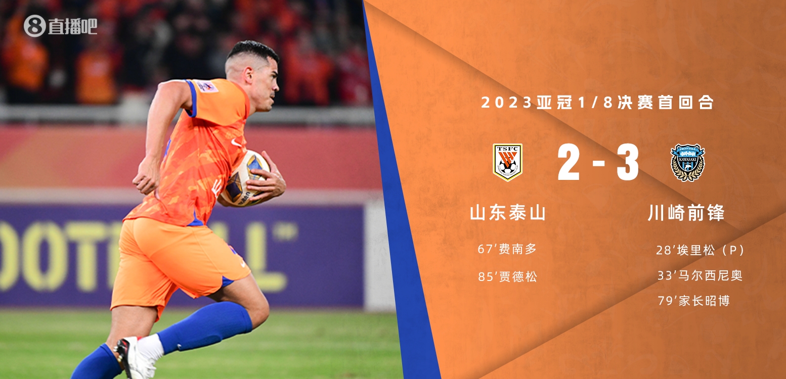 2月13日讯 北京时间2月13日18点,亚冠八分之一决赛首回合山东泰山主场迎战川崎前锋。上半场,吴兴涵离谱停球送角球,这个角球中李源一手球送点,埃里松点射破门,马尔西尼奥头球再下一城,陈蒲错失绝佳机会。下半场,王大雷两次化解对方单刀,费南多替补登场扳回一球,克雷桑中柱,家长昭博单刀破门,贾德松头球再扳一球,补时阶段费南多伤退。全场比赛结束,山东泰山2-3川崎前锋。比赛次回合将在2月20日周二16:00进行,山东泰山客战川崎前锋。