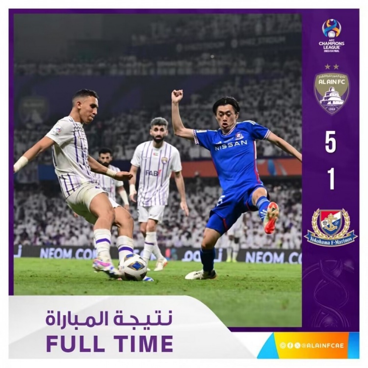 5月26日讯 北京时间0:00,亚冠决赛次回合阿尔艾因主场迎战横滨水手,首回合比赛横滨水手主场2-1战胜阿尔艾因。本场上半场,拉希米首开记录,随后又是拉希米造点,罗梅罗点射破门帮助阿尔艾因总比分反超;扬-马特乌斯帮助横滨水手扳平;半场补时阶段,拉希米又造成横滨水手门将红牌!下半场,拉希米梅开二度!随后拉希米又送出助攻,阿梅特佩破门;补时最后阶段阿梅特佩再下一城。最终,阿尔艾因主场5-1击败十人横滨水手,总比分6-3逆转,队史第二次捧起亚冠冠军!