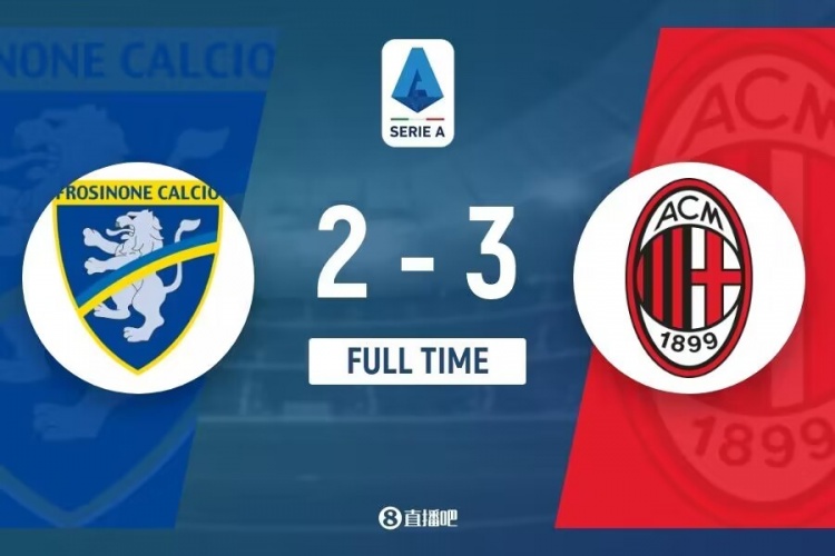 下半场伤停补时5分钟,全场比赛结束,最终AC米兰3-2弗洛西诺内。
