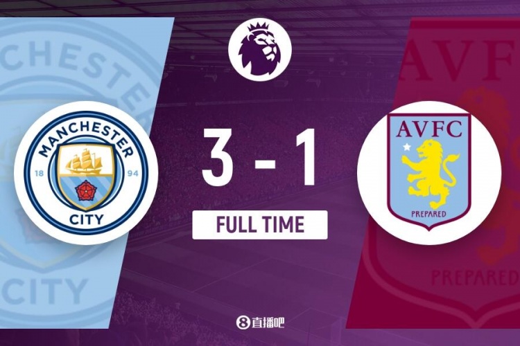 全场比赛结束,曼城3-1阿斯顿维拉。