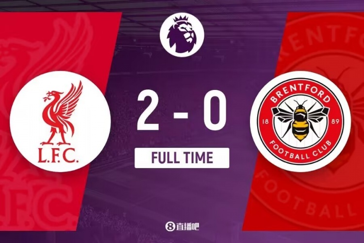 全场比赛结束,利物浦2-0布伦特福德。