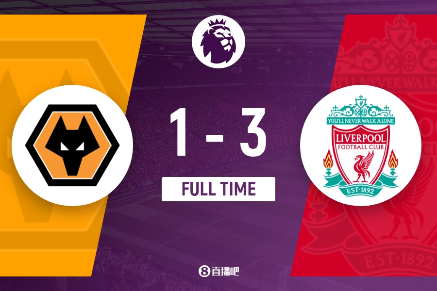 下半场补时8分钟。最终全场比赛结束,狼队1-3利物浦。