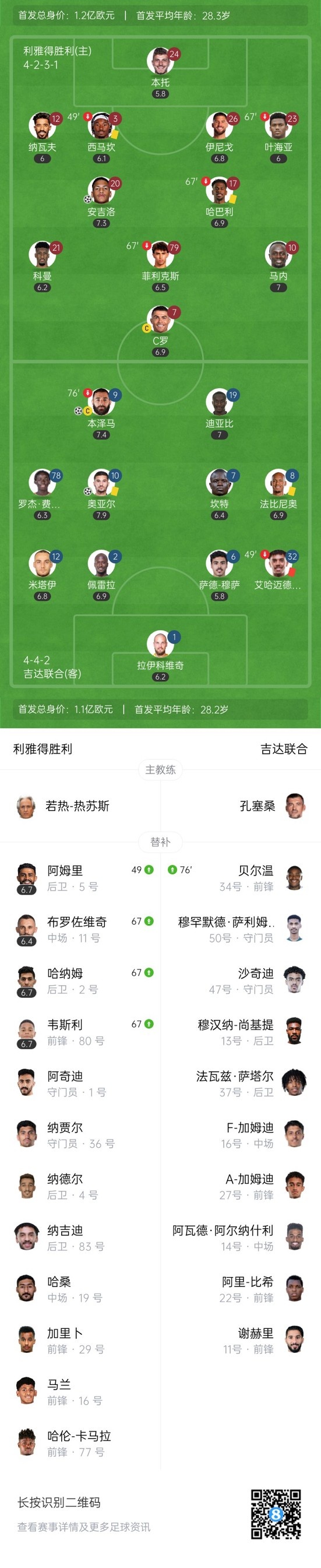 无缘沙王冠八强!利雅得胜利1-2十人吉达联合 本泽马奥亚尔破门