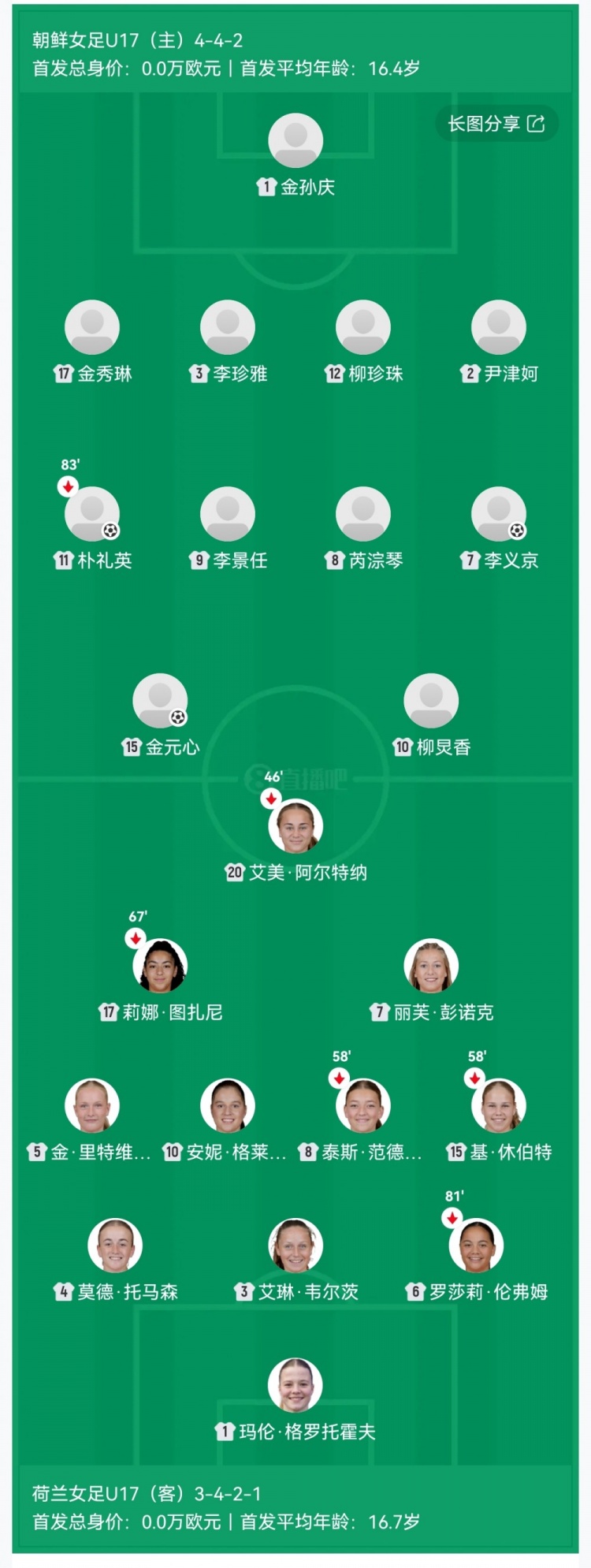 第18分钟,荷兰后场出球失误被断,李义京送出直塞,朴礼英破门!VAR介入确认进球有效!朝鲜2-0领先↓