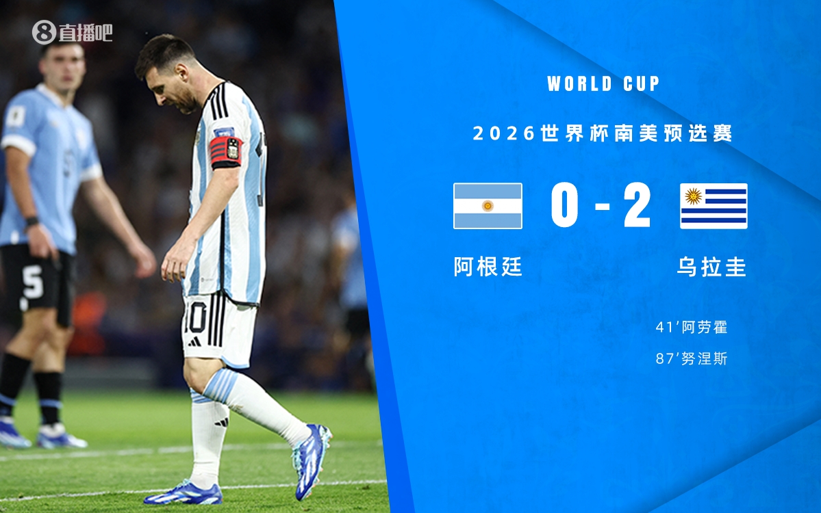 世预赛-阿根廷0-2乌拉圭遭首败 梅西锁喉对手+中楣努涅斯破门
