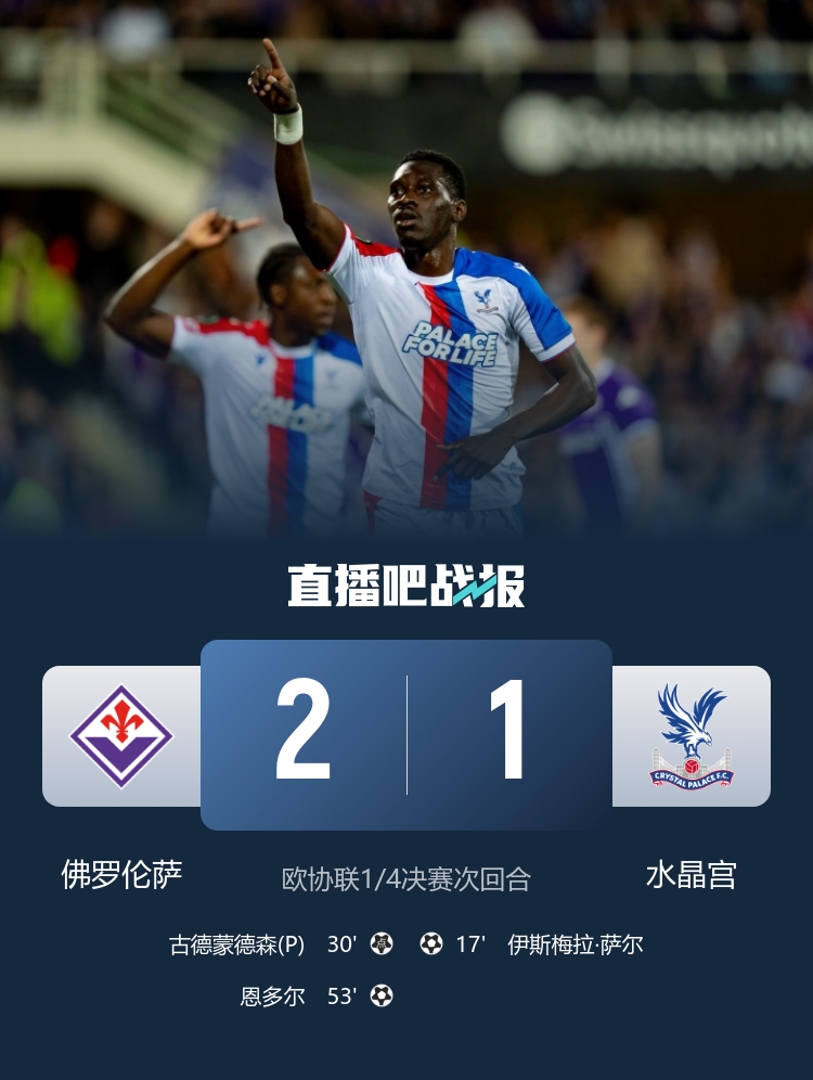 进四强!水晶宫1-2佛罗伦萨总比分4-2晋级 伊斯梅拉·萨尔破门