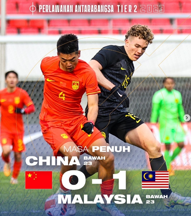 全场比赛结束,男足国奥0-1马来西亚国奥。