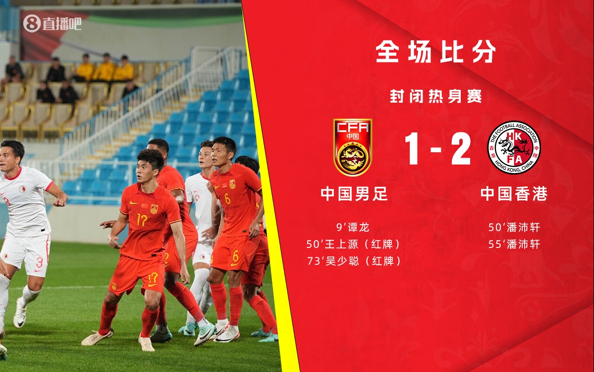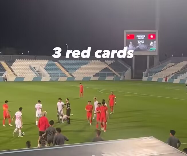 1月1日讯 今晚21:30举行的国际足球热身赛,最终中国男足1-2不敌中国香港。本场比赛没有转播信号,根据多方消息,本场国足王上源、吴少聪+国足助教三人染红,最终国足1-2遭中国香港逆转,热身赛2连败。