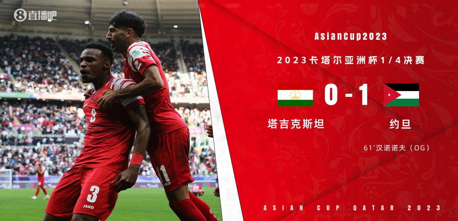 2月2日讯 北京时间19:30,亚洲杯1/4决赛塔吉克斯坦vs约旦。上半场,塔吉克前锋潘尚别铲射中框,约旦前锋奈马特倒在禁区,傅明未判点;下半场,纳西布头槌造乌龙为约旦首开纪录。最终,约旦1-0击败塔吉克斯坦,首次晋级亚洲杯4强!同时也是本届亚洲杯首支4强球队,半决赛,约旦将迎战韩国vs澳大利亚的胜者。