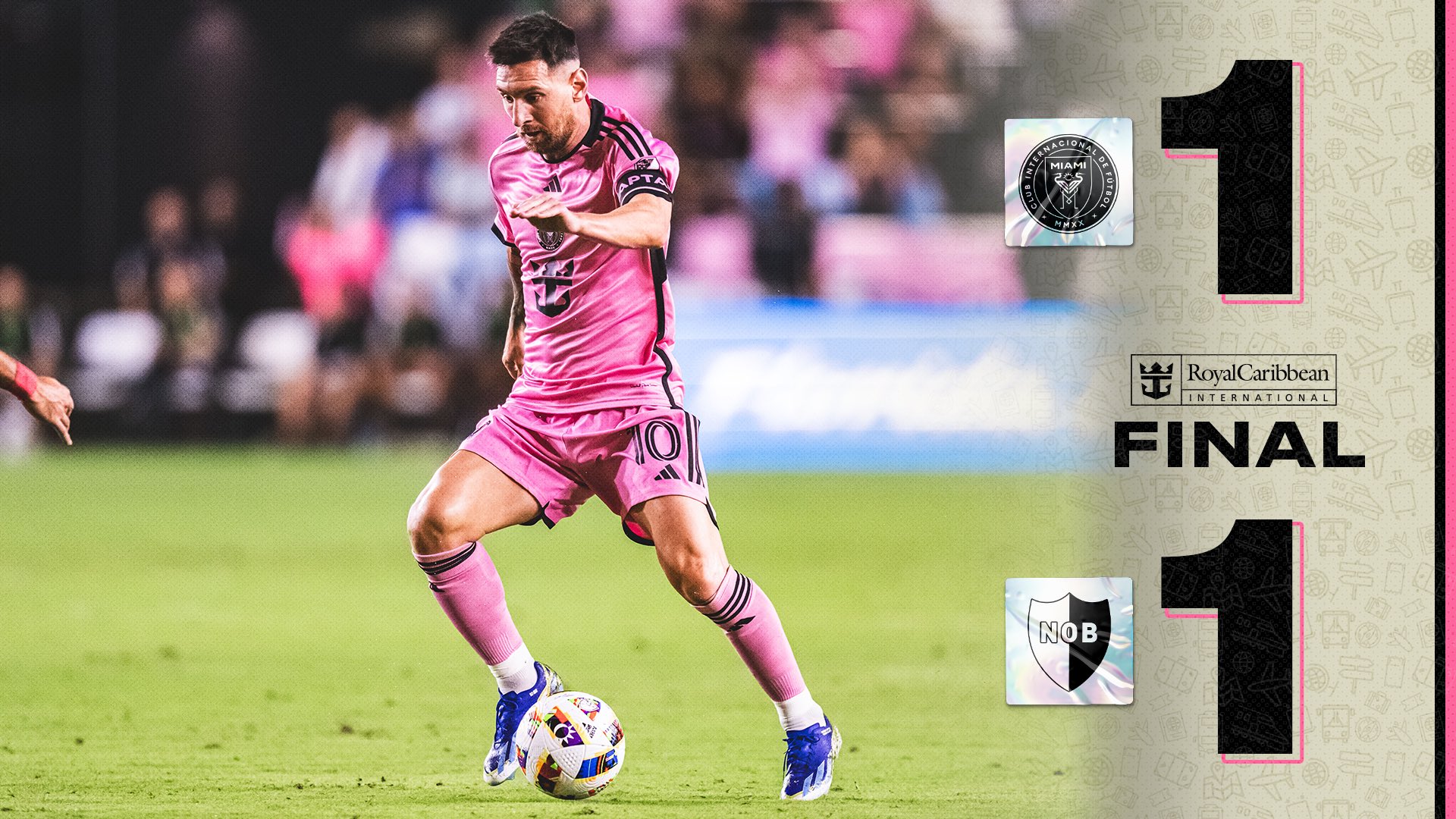 伤停补时3分钟。全场比赛结束,迈阿密国际1-1纽维尔老男孩。