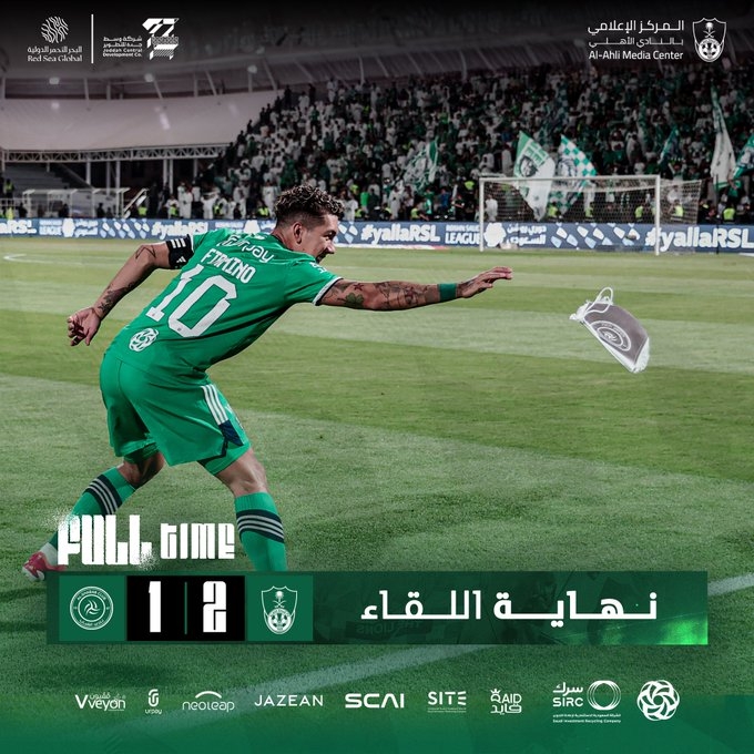 菲尔米诺进球!吉达国民反超!第53分钟,桑托斯自家禁区盘带被布赖坎铲断,随后布赖坎横传,菲尔米诺轻松推射空门得手,利雅得青年人1-2吉达国民!↓