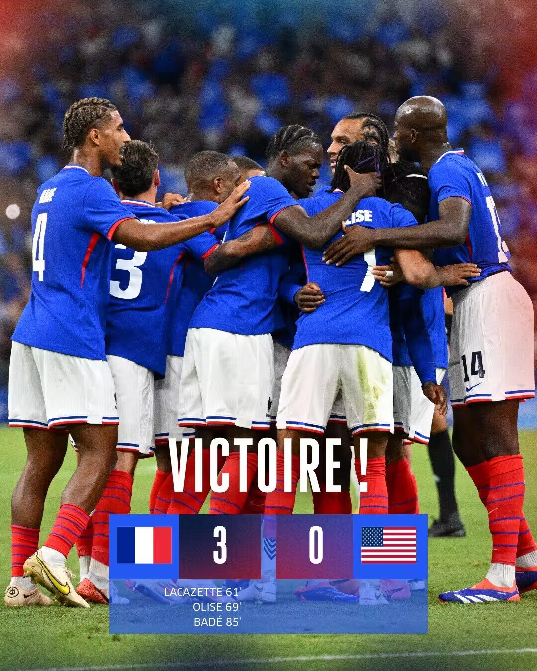 奥运男足-法国3-0美国取开门红 拉卡泽特&奥利塞相互传射建功