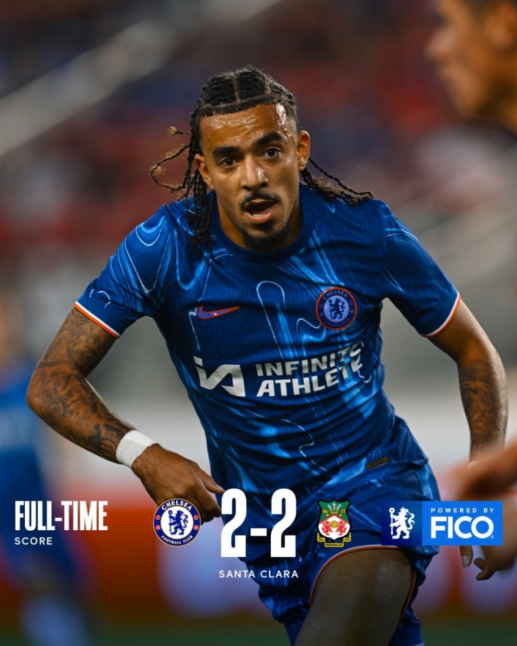 7月25日讯 北京时间7月25日早10时10分,季前热身赛,切尔西对阵雷克瑟姆。上半场,切尔西占据主动,恩昆库破门为切尔西取得领先!半场战罢,切尔西暂1-0雷克瑟姆;易边再战,切尔西做出换人调整,换下除楚克乌梅卡外所有人,雷克瑟姆连入两球将比分反超,乌戈丘库破门将比分扳平。全场比赛结束,切尔西2-2雷克瑟姆!