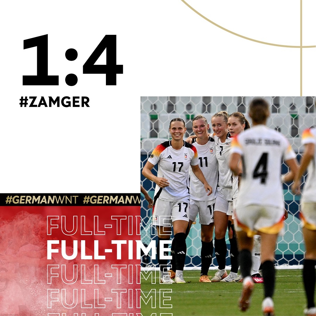 奥运女足-德国4-1大胜赞比亚小组第二出线,赞比亚3连败出局