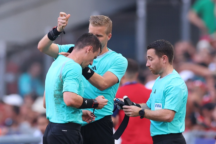第12分钟,西班牙球员倒地不慎追尾主裁判,后者随后一瘸一拐接受医务人员治疗,随后无法坚持被换下。