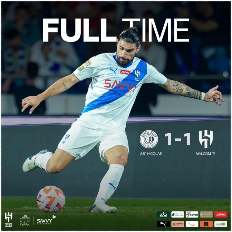 伤停补时6分钟。全场比赛结束,达马克1-1利雅得新月。