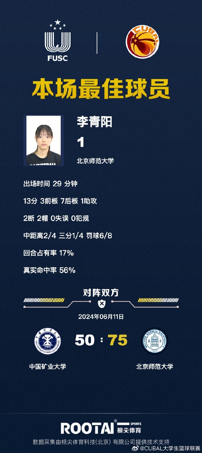 🏀CUBAL-李青阳13+10 北京师大25分大胜中国矿大