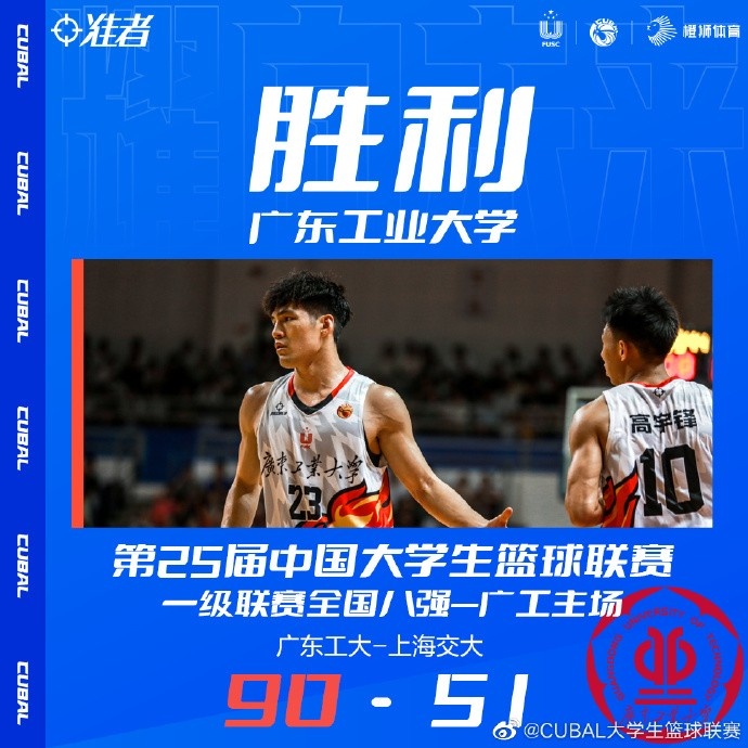 🏀CUBAL全国八强赛-陈国豪23+14+6 广工大胜上海交大先下一城