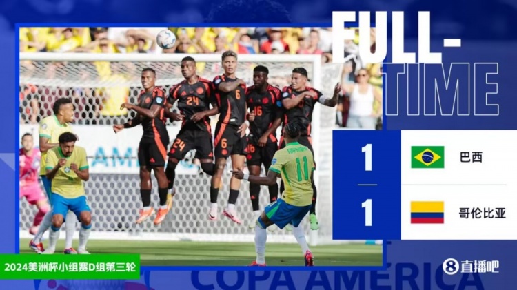 美洲杯-哥伦比亚1-1巴西头名出线 巴西第二1/4决赛将战乌拉圭