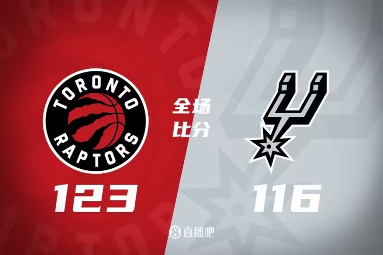 比赛开始,双方都迅速进入状态,但命中率都一般,文班亚马里突外投连续取分,防守端还能送出恐怖封盖,马刺逐渐掌握主动权首节领先4分,次节猛龙突然陷入得分荒,而马刺则是多点开花,虽然文班亚马出手不多,但凯尔登联手状态火热的科林斯、布兰纳姆接连打出小高潮一举拉开19分领先。下半场,施罗德和珀尔特尔一内一外帮助猛龙迅速缩近分差,但文班亚马上场后一攻一防迅速稳住局势,马刺还是保持15分领先,末节马刺进攻端受阻,猛龙外线多点开花连续5记三分直接追到差2分,好在布兰纳姆及时站出来止血,巴恩斯里突外投连砍5分直接追平比分,西亚卡姆关键推人犯规送两罚,但阿努诺比“偷鸡”上篮再次追平,双方进入加时。加时赛,西亚卡姆上来就扔进三分,文班亚马中投给出回应,随后阿努诺比再进三分领先到6分,随后猛龙掌握住两球以上领先,文班亚马关键三分涮出,最终猛龙加时123-116逆转马刺。