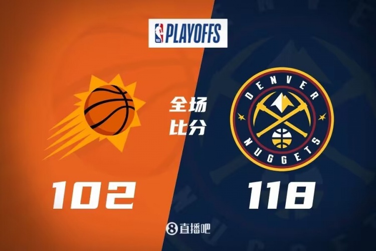 上半场,掘金率先发力开局9-0领先,太阳内外开花努力追赶,波特火力全开单节砍下14分,掘金也带着两位数的优势结束首节。第二节,掘金命中率骤降,太阳奋力反击一度完成反超,约基奇得分助攻一肩挑稳住局势,半场战罢掘金52-49领先3分。下半场,掘金续上火力,单节爆砍39分一度将分差拉开到20分以上,布克没能再力挽狂澜,过大的分差让比赛早早失去悬念,太阳苦苦追赶无果,最终,掘金118-102大胜太阳,攻占天王山取得3-2的领先,拿到本轮系列赛的赛点。