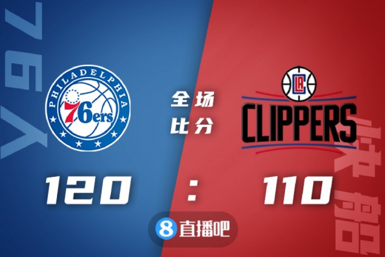 76人(28-16):恩比德41分9板3助2帽、哈登6分3板9助、哈里斯20分6板6助5断、马克西22分2板2助、尼昂9分。