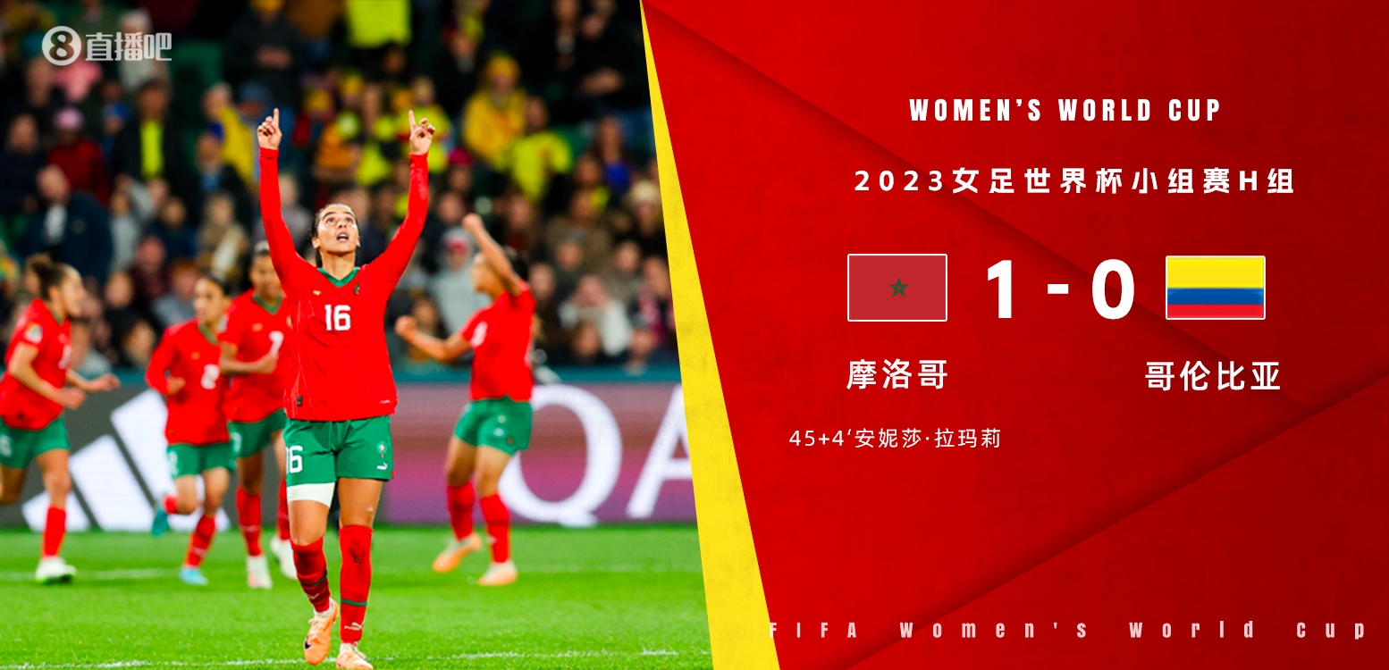 直播吧8月3日讯 北京时间8月3日18:00,女足世界杯小组赛H组第3轮,摩洛哥女足vs哥伦比亚女足。上半场,场面比较胶着,切巴克补时失点,拉玛丽补射破门;下半场,哥伦比亚多次完成射门,拉米雷斯中柱。最终,摩洛...发表于:08月03日