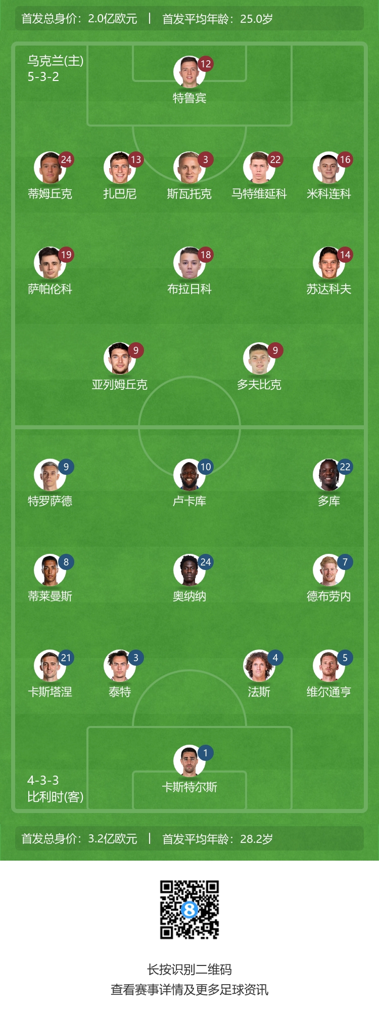 乌克兰未登场替补:1-布什坎、23-卢宁、2-科诺普利亚、4-塔洛维尔罗夫、5-塞多尔丘克、10-穆德里克、15-齐甘科夫、20-祖布科夫、21-邦达尔、26-米哈伊利琴科