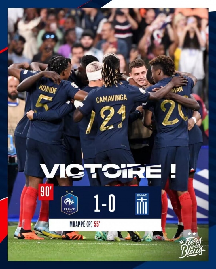 欧预赛-姆巴佩点射格子血染赛场主裁拉奥斯告别战 法国1-0希腊
