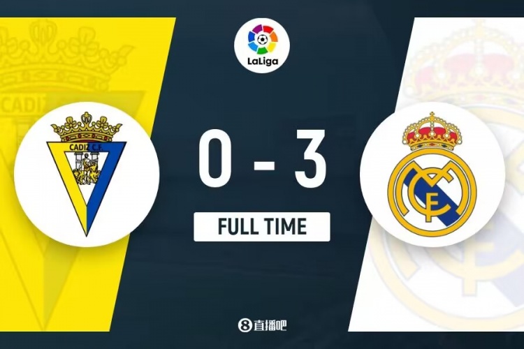 下半场伤停补时5分钟,全场比赛结束,最终皇马3-0加的斯。