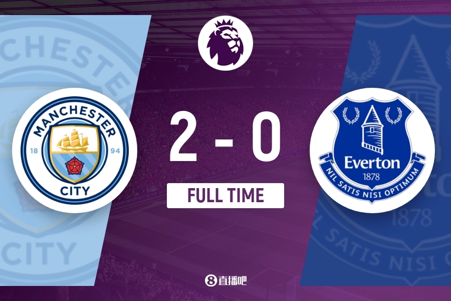 全场比赛结束,曼城2-0战胜埃弗顿。