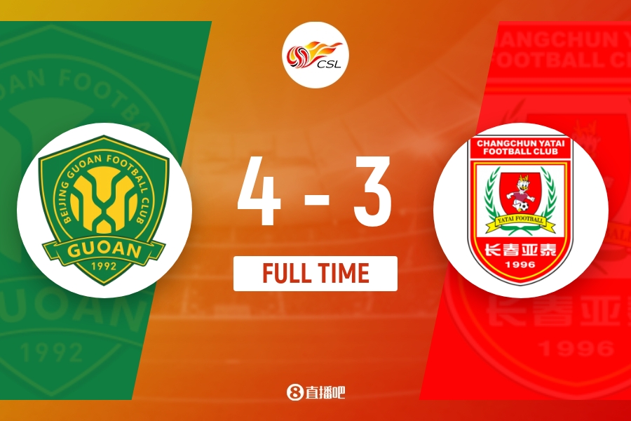 全场比赛结束,最终北京国安4-3长春亚泰。