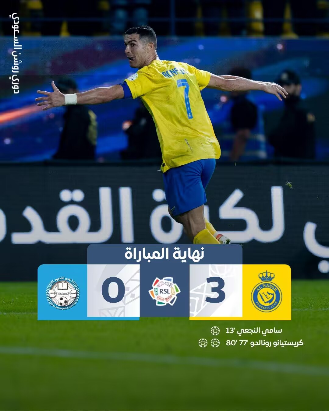 沙特联-利雅得胜利3-0阿科多五连胜 C罗超远吊射&双响胜利距榜首1分
