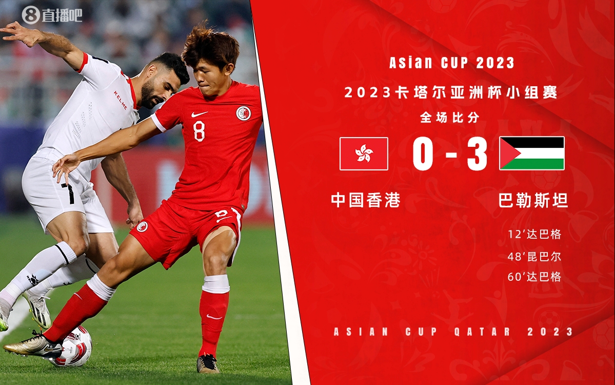 1月24日讯 北京时间23;00,亚洲杯C组末轮,中国香港vs巴勒斯坦。上半场达巴格为巴勒斯坦首开纪录,下半场昆巴尔、达巴格再下两城,埃弗顿失点。最终中国香港0-3不敌巴勒斯坦,小组垫底出局,巴勒斯坦小组第三晋级。